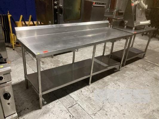 STAINLESS STEEL PREP BENCH, 210 x 70cm, 2 TIER WITH SPLASHBACK