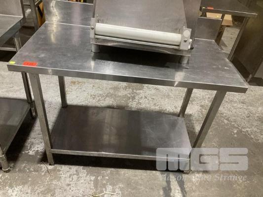 STAINLESS STEEL PREP BENCH, 120 x 60cm, 2 TIER WITH SPLASHBACK