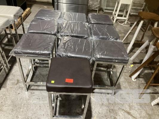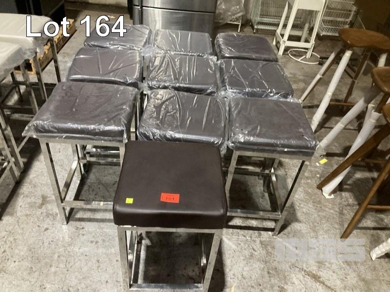10 x BAR STOOLS, BROWN VINYL, STAINLESS STEEL FRAME