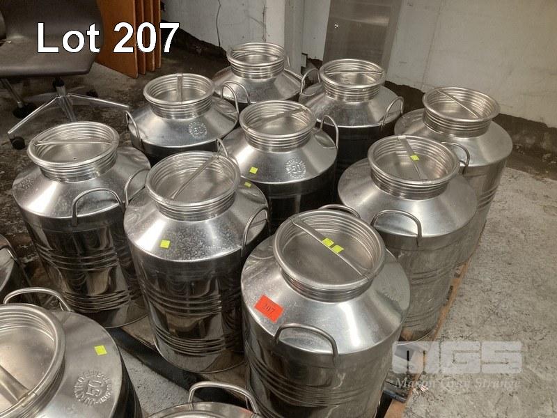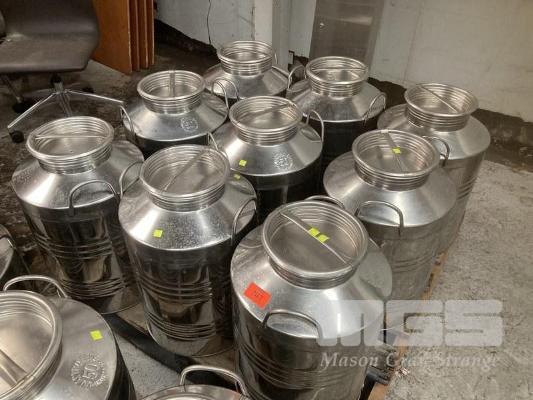 9 x STAINLESS STEEL INOX CHURNS, EACH 50 LITRE