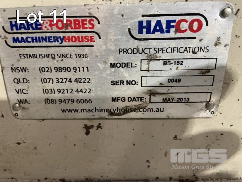 HAFCO LINSHER, MODEL: BS-152, DOM: 2013, 415v, BELT: 150mm, ON TILTING STAND, PLUS SPARE BELTS