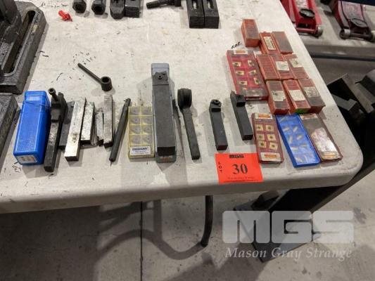 ASSORTED LATHE TOOLS, TOOL HOLDER, LARGE QUANTITY OF TIPS & KNURLING TOOL