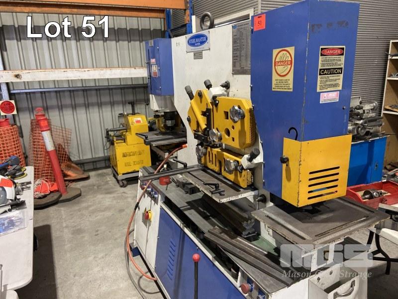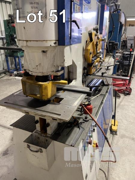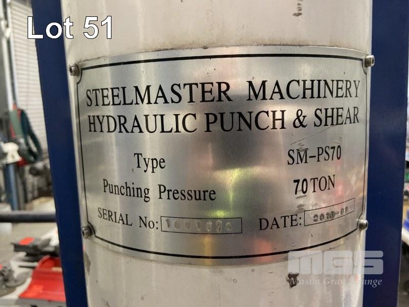 STEEL MASTER PUNCH & SHEAR, MODEL: SM-PS70, 70 TONNE, DOM: 09/2013, WITH NOTCHER, 12 PUNCHES, AUTO CUT TO LENGTH BAR