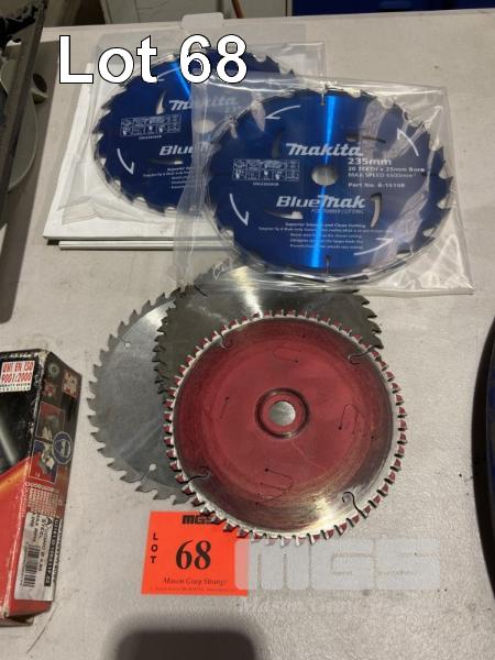 5 x TIPPED SAW BLADES, 2 - NEW, MAKITA BLUEMAK 235mm, + 3 ASSORTED