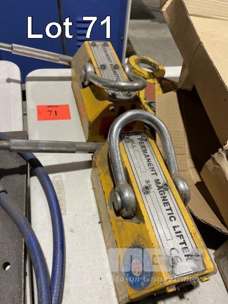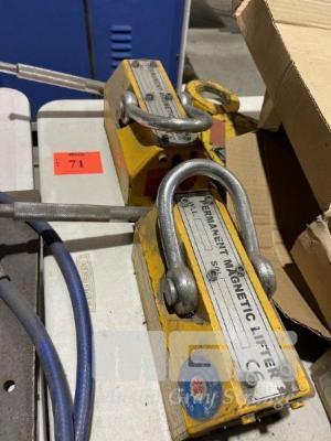 PAIR PMC-600 MAGNETIC LIFT HOOKS, 600kg RATED + 1 PLATE GRAB, 1.5 TONNE