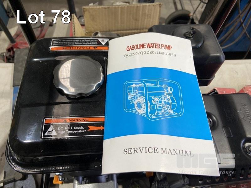 NEW LUMIC WATER PUMP, PETROL, 170F, MODEL: QG280, WITH SUCTION FILTER + HOSE FITTINGS & HAND BOOK