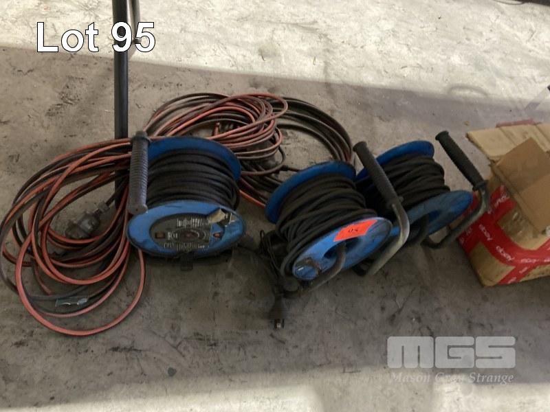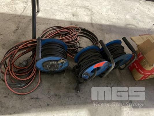 3 x EXTENSION CORD REELS 240v, 25m, WITH ELCB + VARIOUS EXTENSION CORDS
