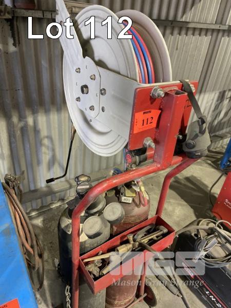 OXY/ACC SET ON TROLLEY WITH RETRACTABLE HOSE UNIT, HAND PIECE & ACCESSORIES, GAUGES, (BOTTLES NOT INCLUDED)