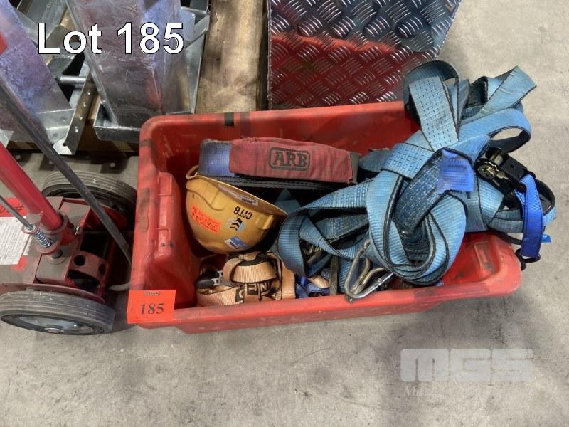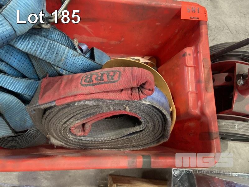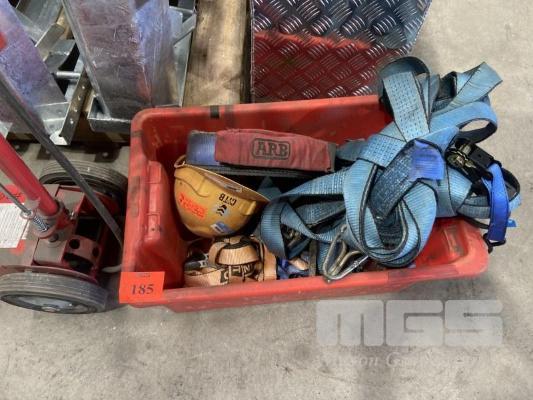 ASSORTED TIE DOWNS, 1 TUB, & ARB SNATCH STRAP