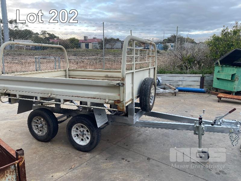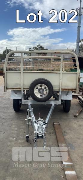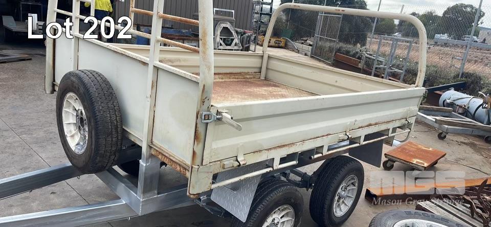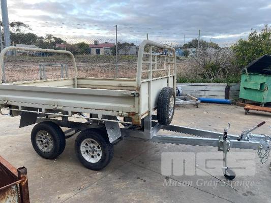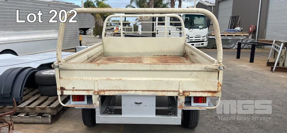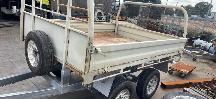 DUAL AXLE FLATBED TRAILER, 2400 x 1900mm WITH DROP SIDES, LADDER RACKS, ALLOY WHEELS, LIGHT TRUCK TYRES, LED LIGHTS, BRAKES & SPARE TYRE, GVM: 1995kg TARE: 580kg VIN: 679T2000SPA1FC106 GREAT BUILDERS TRAILER!