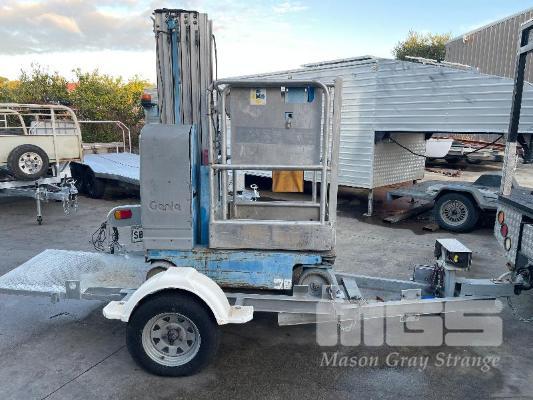 TILTING PLANT TRAILER REG- S 804TCA. SINGLE AXLE , 5 STUD RIMS. BED SIZE 2500 X800 mm . SUIT EWP. 50 mm COUPLER WITH 12 VOLT WINCH.