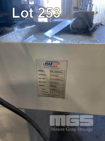 HAFCO SWIVEL HEAD DUAL MITRE METAL CUTTING BANDSAW MODEL: EB-280DSV , DOM: 2021, 240v, VARIABLE SPEED, 20-90mpm, HYDRAULIC DOWNFEED, WITH IN FEED ROLLERS