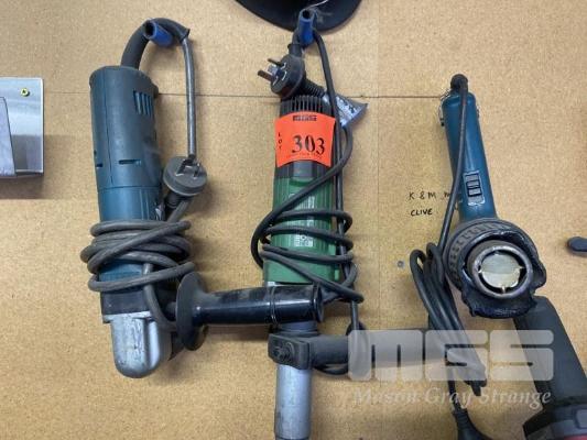 RYOBI 240v HEAT GUN, SIDCHROME AIR SPRAY GUN, HITACHI 240v ROTARY TOOL, MAKITA 90 DEGREE DRILL, 240v, MAKITA HAND HELD LINISHER, 240v