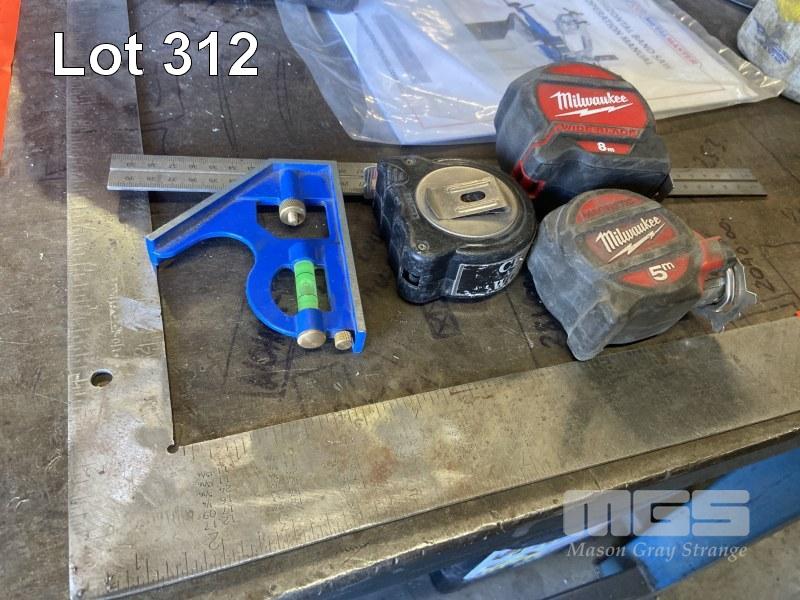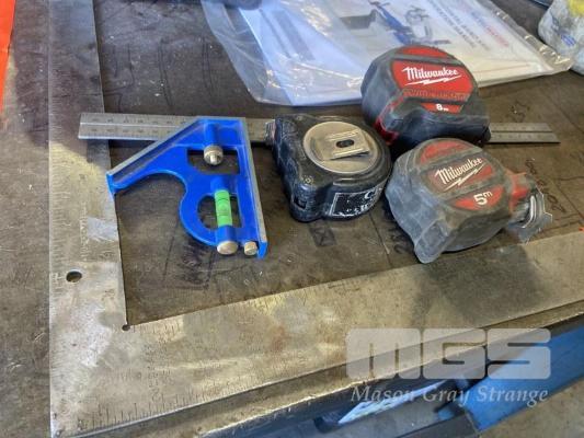 3 x SET SQUARES, 600mm, 1 x SMALL SLIDING SET SQUARE, 4 x TAPE MEASURES