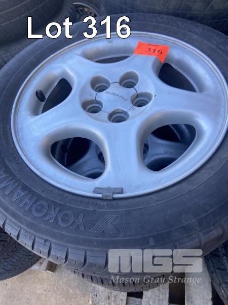 4 x ALLOY SUBARU WHEELS & TYRES, 5 STUD, 195/60 R15