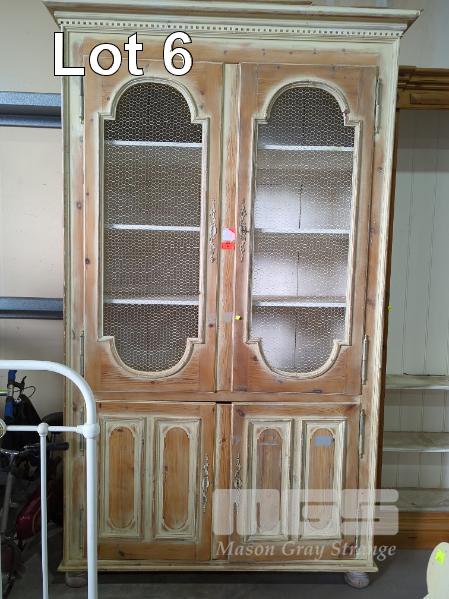 WHITEWASH/SEMI STRIPPED 2 DOOR/DRAWER LARGE PANTRY STYLE CABINET, CHICKEN WIRE FRONTED 2 DOOR UNDER STORAGE 1.5 X 0.6 X 2.65 M (W D H)