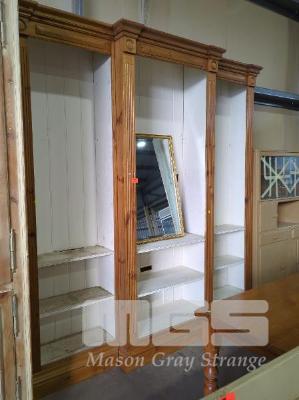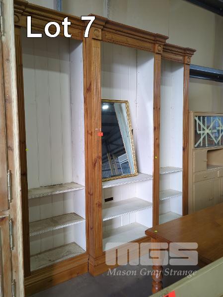 PINE WALL UNIT, 3-PIECE RETRO FITTED TO MAKE AN ENTERTAINMENT UNIT 2.55 X 0.5 X 2.55 M (W D H)