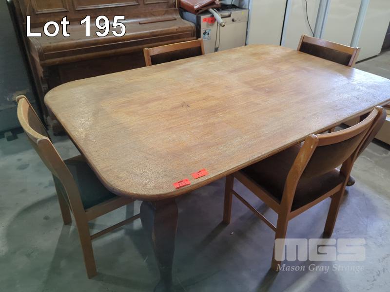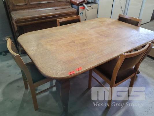 TIMBER DINING DINING TABLE 183 X 123 CM. WITH 4 X PADDED FELT TIMBER CHAIRS