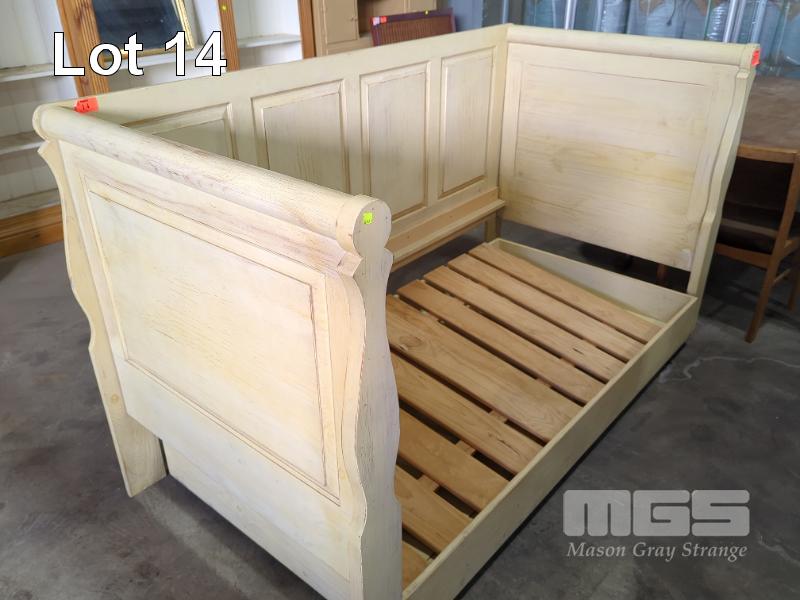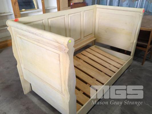 WHITE WASH TIMBER BED/LOUNGE, TRUNDLE BED BASE 215 X 105 X 120 CM (W D H)