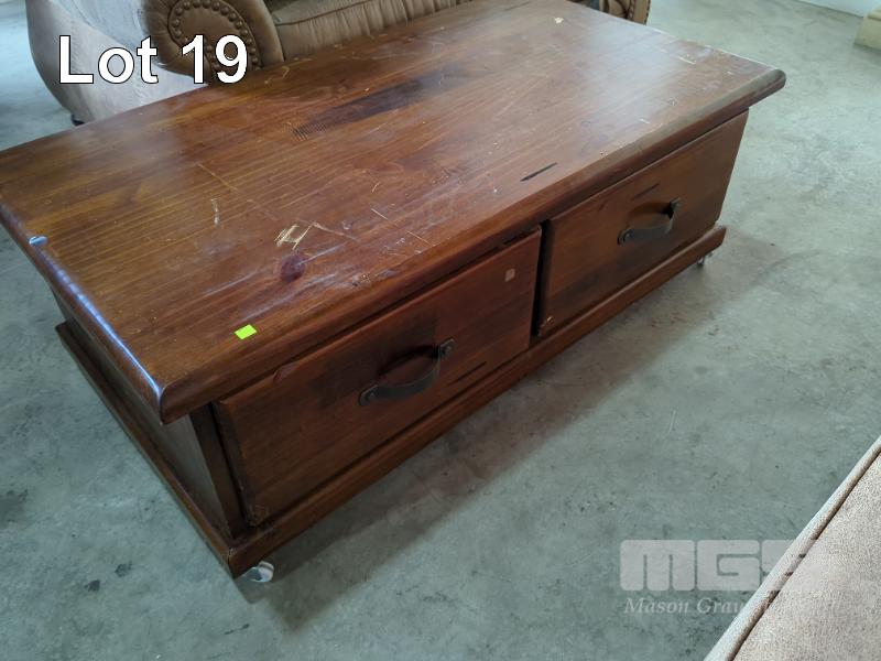 2-DRAWER COFFEE TABLE ON CASTERS.