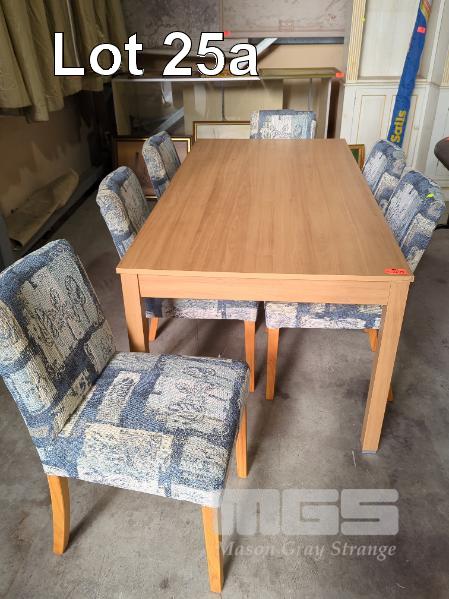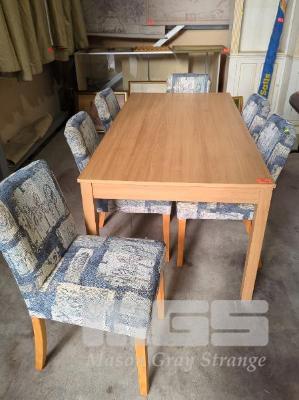 CONTEMPORARY 6-SEATER WHITE OAK DINING TABLE WITH 6 X FABRIC MID BACK DINING CHAIRS