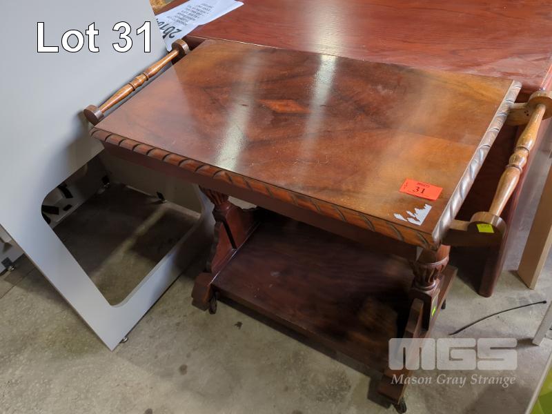 MAHOGANY TRAYMOBILE, DECORATIVE CARVED PIE CRUST EDGE