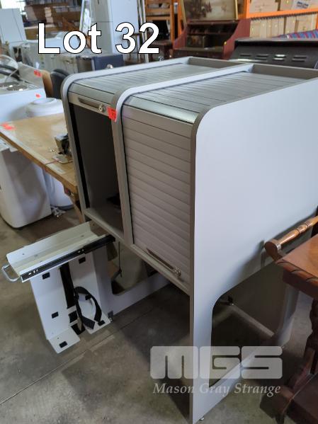 DOUBLE ROLL-TOP DOCUMENT STATION WITH SLIDE OUT COMPUTER MOUNT