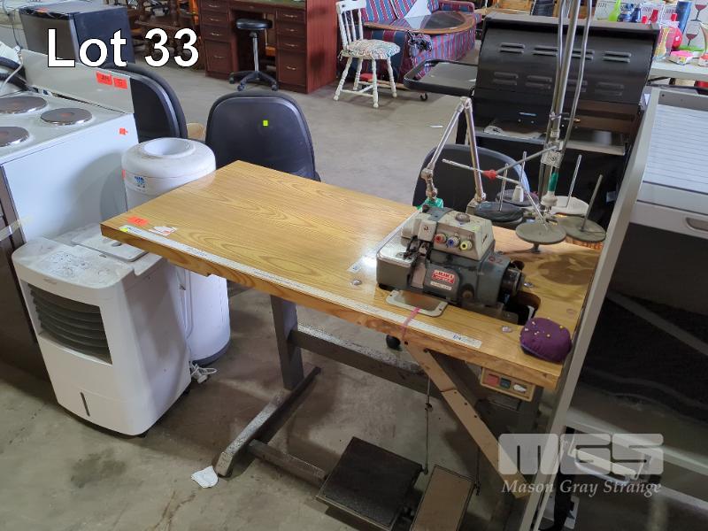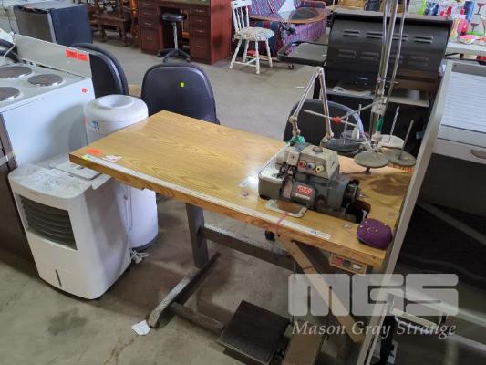 JUKI MO-804 INDUSTRIAL OVERLOCKER WITH TREADLE CONTROL PEDAL ON H/D BENCH