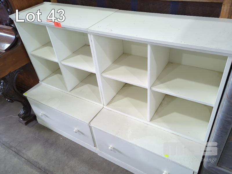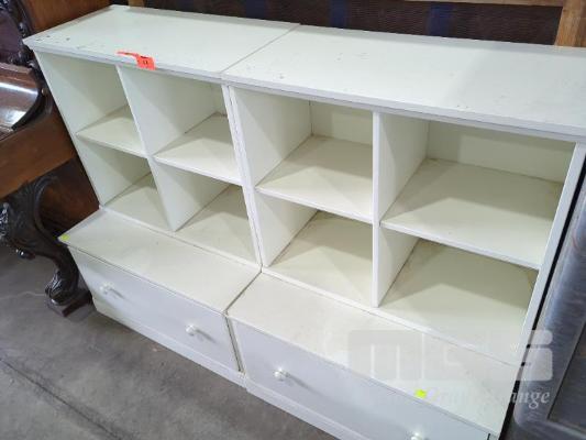 3 x WHITE PIGEONHOLE UNITS WITH 2 x HAVING UNDERSTORAGE,1 x MISSING DRAWER