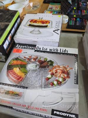 CAKE SERVING DISH AND APPETISER TRAY BOTH NEW INBOX