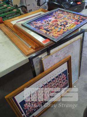 10 X ASSORTED PICTURE FRAMES INCLUDING WOODEN FRAMES GLAZED AND PRINTS.