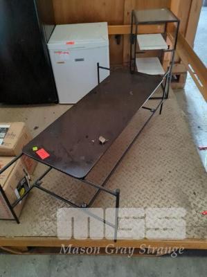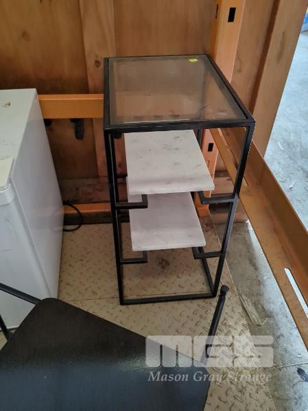 CONTEMPORARY COFFEE TABLE STONEWARE TOP AND GLASS TOPPED SIDE TABLE.