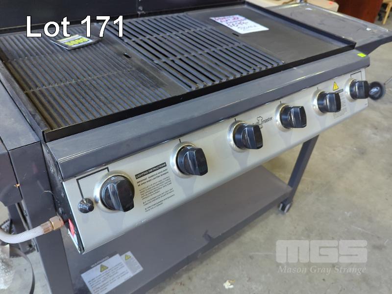 GRILLMASTER MOBILE FLAT TOP GAS BBQ. 6-BURNER WITH TROLLEY. NEW IN BOX. RRP $699