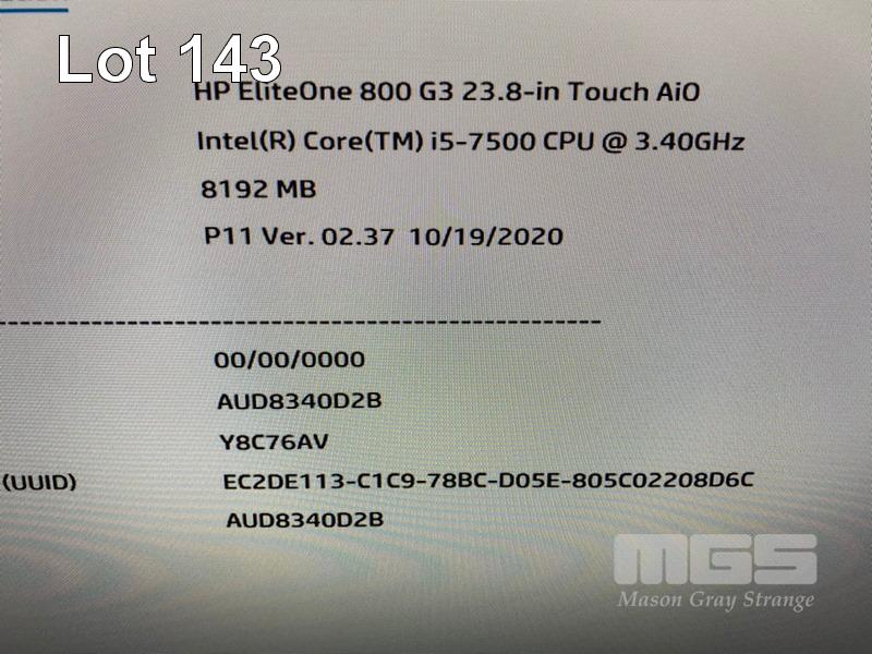 ALL-IN-ONE PC, HP ELITEONE 800 G3 (Y8C76AV), CORE i5 7500 (7TH GEN) @ 3.4GHz, 8GB DDR4 RAM, 256GB SSD, INBUILT 23.8" WIDESCREEN (1920x1080), INTEL HD GRAPHICS, WINDOWS 11 PRO INSTALLED (NO KEYBOARD, NO MOUSE) WITH AOC STAND (NOTE: PURPLE SCREEN BLEMISH ON STARTUP) S/N:AUD8340D2B