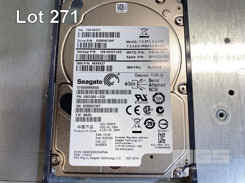 RACKMOUNT STORAGE ARRAY, NETAPP DS2246 (NAJ-1001), 2U, 24 x 600GB SAS HDD, 2 x IOM 6 SAS STORAGE CONTROLLERS, 2 x PSU WITH RAILS (NO CABLES) S/N:9439107174