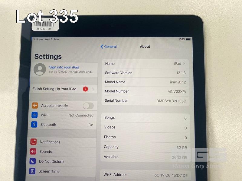 APPLE iPAD AIR 2, 32GB, Wi-Fi, SPACE GREY, MODEL A1566, MNV22X/A (NO CABLE, NO CHARGER) S/N:DMPSYK82HG5D