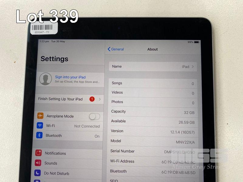 APPLE iPAD AIR 2, 32GB, Wi-Fi, SPACE GREY, MODEL A1566, MNV22X/A (NO CABLE, NO CHARGER) S/N:DMPSYKLQHG5D
