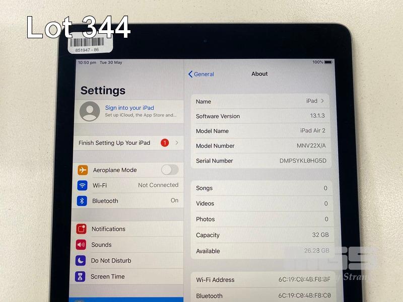 APPLE iPAD AIR 2, 32GB, Wi-Fi, SPACE GREY, MODEL A1566, MNV22X/A (NO CABLE, NO CHARGER) S/N:DMPSYKL0HG5D