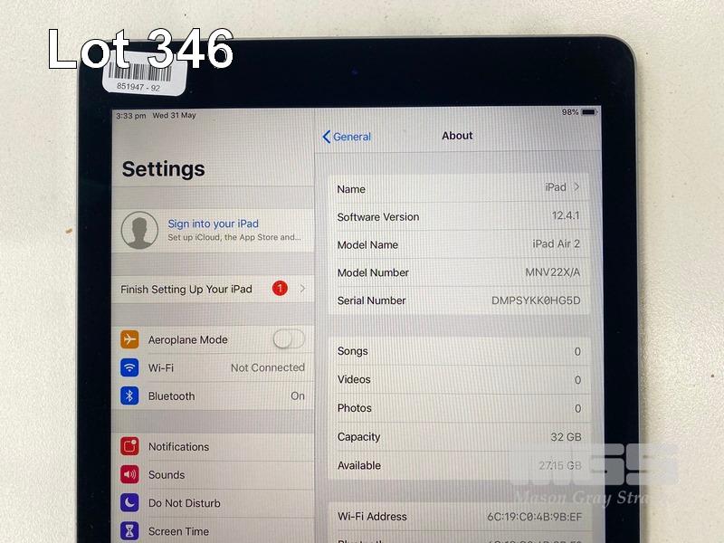 APPLE iPAD AIR 2, 32GB, Wi-Fi, SPACE GREY, MODEL A1566, MNV22X/A (NO CABLE, NO CHARGER) S/N:DMPSYKK0HG5D