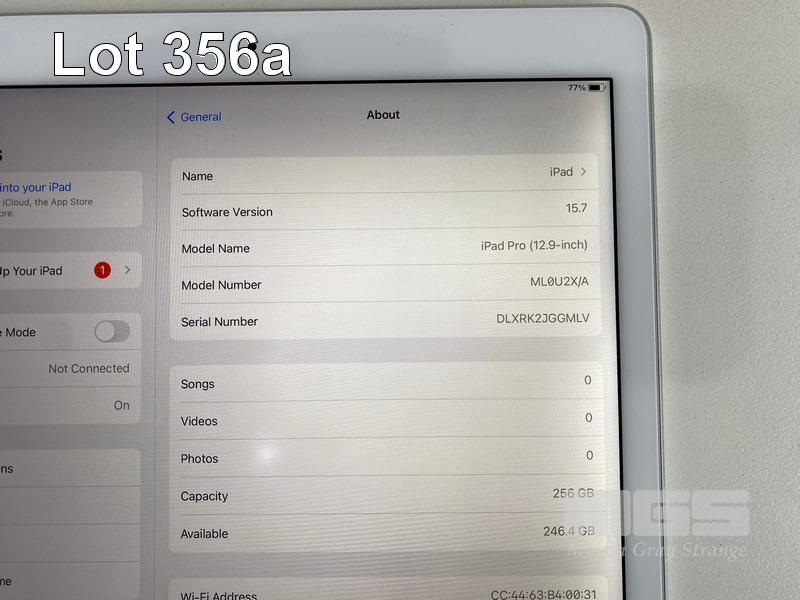 APPLE iPAD PRO 12.9", 256GB, Wi-Fi, SILVER, MODEL A1584, ML0U2X/A (NO CABLE, NO CHARGER) (NOTE: DAMAGED SCREEN, WHITE SPOTS) S/N:DLXRK2JGGMLV