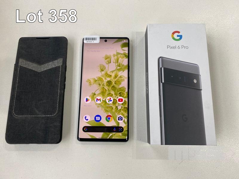 GOOGLE PIXEL 6 PRO SMARTPHONE, MODEL G8V0U, 128GB, STORMY BLACK WITH CASE (NO CABLE, NO CHARGER) S/N:23031FDEE001R7