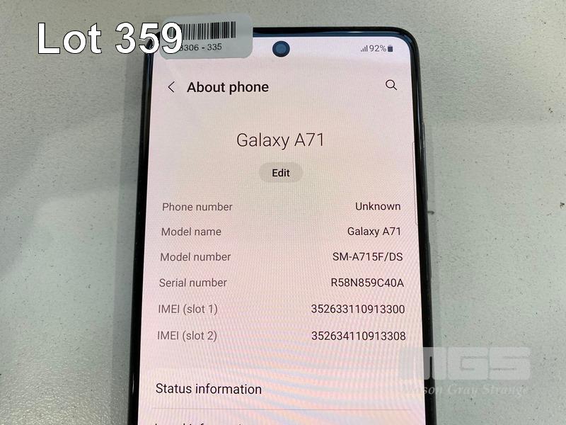 SAMSUNG GALAXY A71 SMARTPHONE, MODEL SM-A715F/DS, 128GB (NO CHARGER, NO CABLE) S/N:R58N859C40A