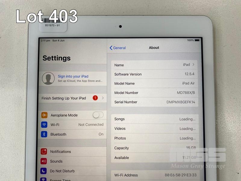APPLE iPAD AIR, 16GB, Wi-Fi, SILVER, MODEL A1474, MD788X/B (NO CABLE, NO CHARGER) S/N:DMPMX8GEFK14