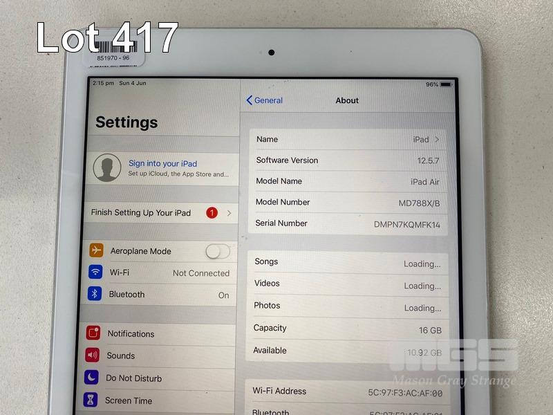 APPLE iPAD AIR, 16GB, Wi-Fi, SILVER, MODEL A1474, MD788X/B