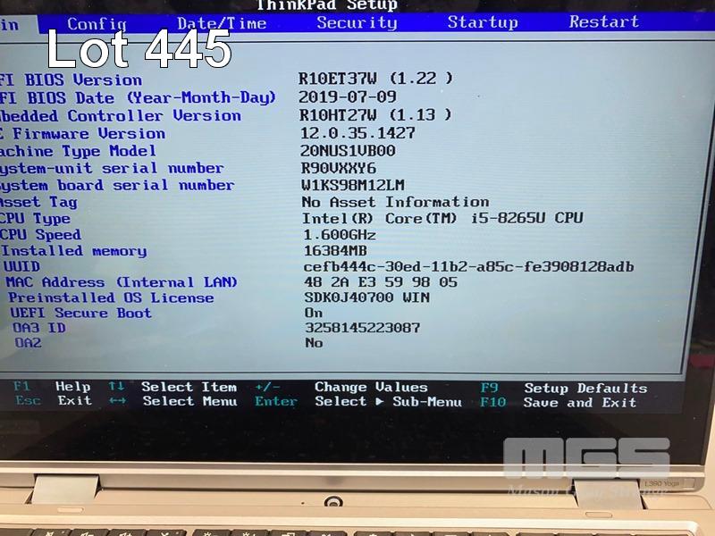 LAPTOP, LENOVO THINKPAD L390 YOGA, TYPE 20NU, CORE i5 8265U (8TH GEN) @ 1.6GHz, 16GB DDR4 RAM, 256GB NVMe M.2 SSD, 13.3" TOUCHSCREEN (1920x1080), INTEL UHD GRAPHICS, Wi-Fi, BLUETOOTH, STYLUS, WINDOWS 11 HOME INSTALLED (NO USB-C POWER SUPPLY) (NOTE: MINOR MARKS ON SCREEN) S/N:R90VXXY6