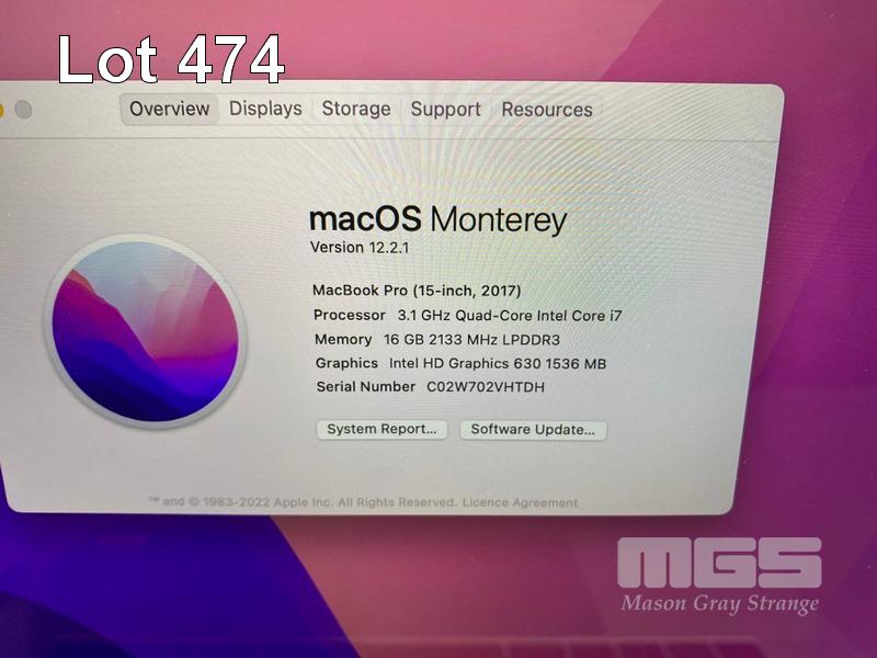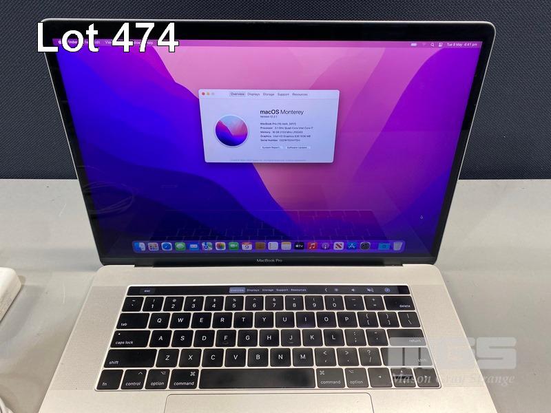 LAPTOP, APPLE MACBOOK PRO (A1707), CORE i7 7920HQ (7TH GEN) @ 3.1GHz, 16GB DDR3 RAM, 1TB SSD, 15.4" RETINA DISPLAY (2880x1800), INTEL HD GRAPHICS 630, THUNDERBOLT 3, TOUCHBAR, Wi-Fi, BLUETOOTH, MAC OS 12 INSTALLED & USB-C POWER SUPPLY (NOTE: MARKS ON SCREEN) S/N:C02W702VHTDH