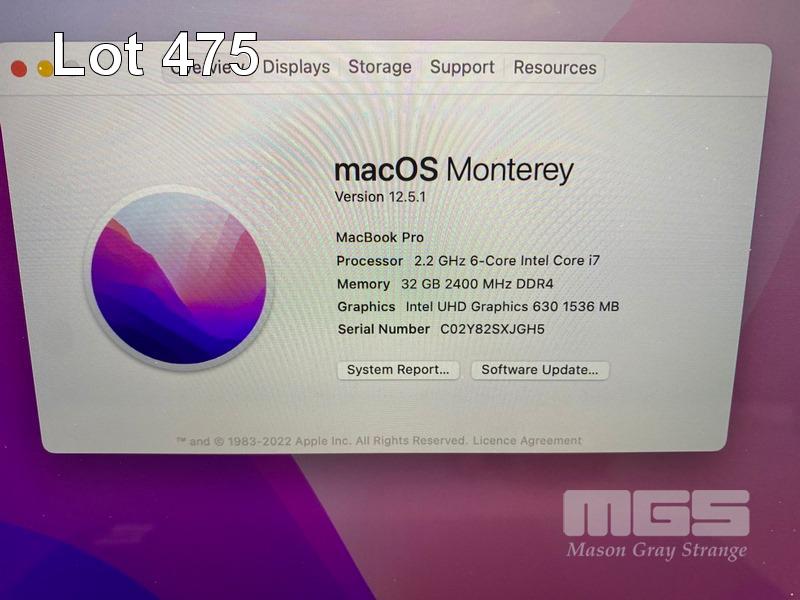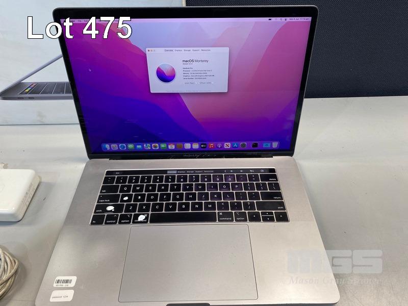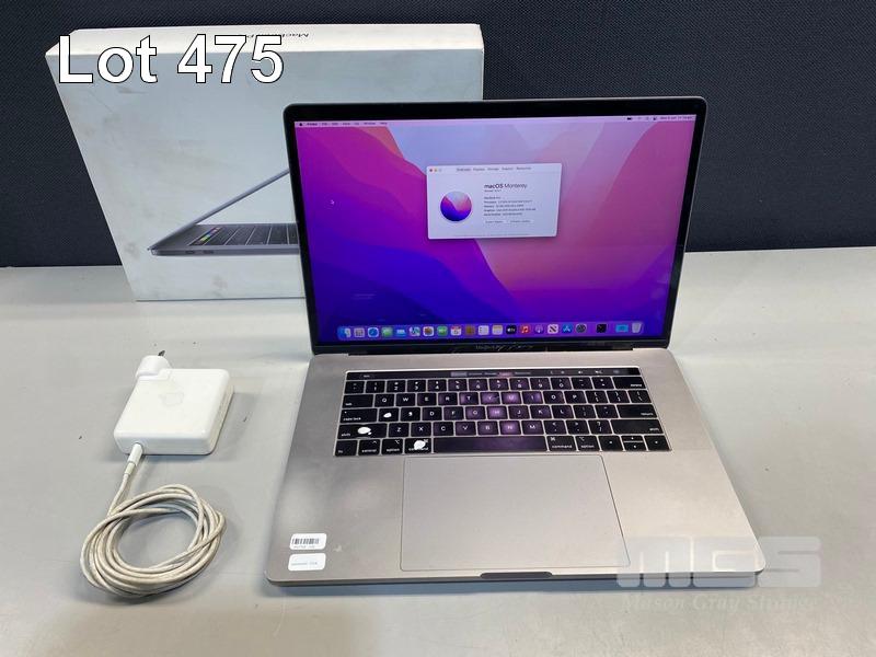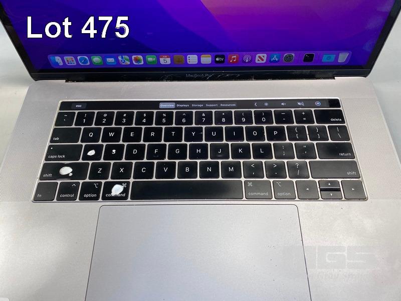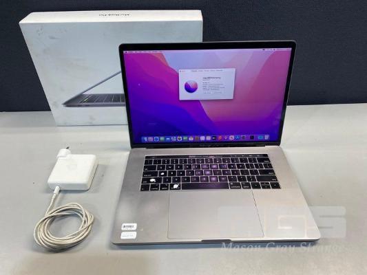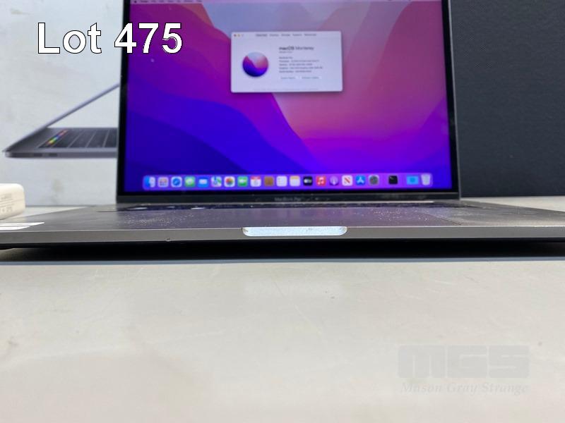 LAPTOP, APPLE MACBOOK PRO (A1990), CORE i7 8750H (8TH GEN) @ 2.2GHz, 32GB DDR4 RAM, 256GB SSD, 15.4" RETINA DISPLAY (2880x1800), INTEL UHD GRAPHICS 630, THUNDERBOLT 3, TOUCHBAR, Wi-Fi, BLUETOOTH, MAC OS 12 INSTALLED & USB-C POWER SUPPLY (NOTE: DAMAGED BOTTOM OF SCREEN, SWOLLEN BATTERY, KEYBOARD FAULT - SOME KEYS NOT WORKING / WORN, MINOR MARKS ON SCREEN) S/N:C02Y82SXJGH5