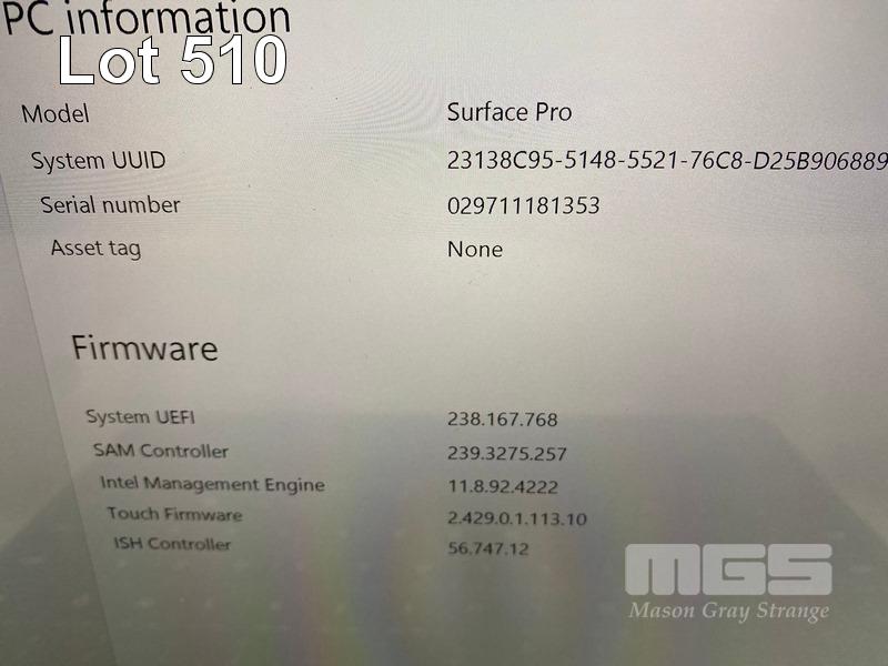 TABLET PC, MICROSOFT SURFACE PRO 5TH GEN, MODEL 1807, CORE i5 7300U (7TH GEN) @ 2.6GHz, 8GB RAM, 256GB SSD, 12.3" TOUCHSCREEN (2736x1824), INTEL HD GRAPHICS 620, Wi-Fi, CELLULAR, BLUETOOTH, WINDOWS 10 PRO INSTALLED, KEYBOARD TYPE COVER, STM DUX SHELL CASE & POWER SUPPLY S/N:029711181353