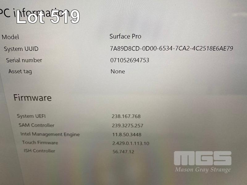 TABLET PC, MICROSOFT SURFACE PRO 5TH GEN, MODEL 1807, CORE i5 7300U (7TH GEN) @ 2.6GHz, 8GB RAM, 256GB SSD, 12.3" TOUCHSCREEN (2736x1824), INTEL HD GRAPHICS 620, Wi-Fi, CELLULAR, BLUETOOTH, WINDOWS 10 PRO INSTALLED & POWER SUPPLY S/N:071052694753