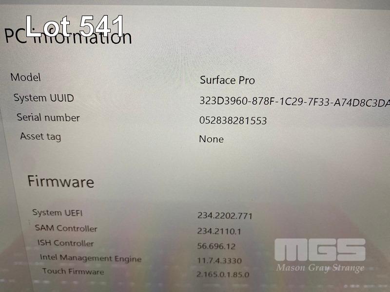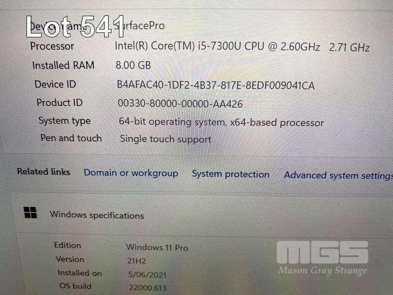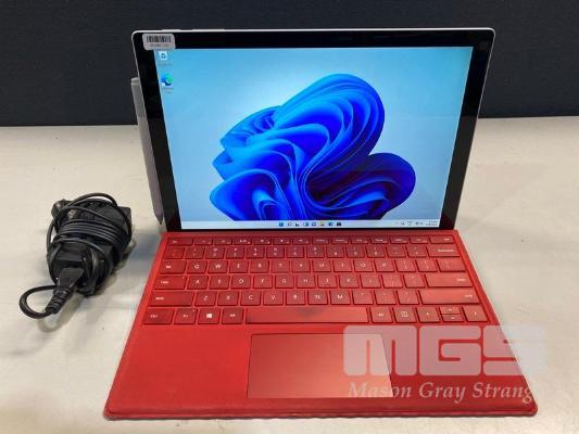 TABLET PC, MICROSOFT SURFACE PRO 5TH GEN, MODEL 1807, CORE i5 7300U (7TH GEN) @ 2.6GHz, 8GB RAM, 256GB SSD, 12.3" TOUCHSCREEN (2736x1824), INTEL HD GRAPHICS 620, Wi-Fi, CELLULAR, BLUETOOTH, WINDOWS 11 PRO INSTALLED, KEYBOARD TYPE COVER, STYLUS & POWER SUPPLY S/N:052838281553